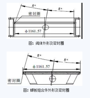 三偏心金屬硬密封蝶閥的密封面是斜錐面,閥體密封圈(圖1)與蝶板組合件密封圈(圖2)的接觸為面接觸,其工作原理是靠驅(qū)動(dòng)裝置扭力直接帶動(dòng)蝶板組合件,使蝶板組合件密封圈與閥體密封圈充分接觸后產(chǎn)生彈性變形而密封。三偏心金屬硬密封蝶閥作為一種高性能閥門,具有耐腐蝕性好、密封可靠、開啟力矩小等優(yōu)點(diǎn)。三偏心硬密封電動(dòng)蝶閥DN1200,其中閥體密封圈材料為1Cr18Ni9Ti,蝶板組合件密封圈材料為復(fù)合的不銹鋼板與石棉板夾層組合件,閥體密封圈與蝶板組合件密封圈的加工質(zhì)量直接決定蝶閥密封性能。