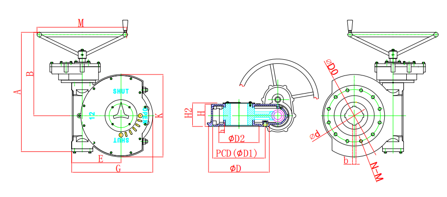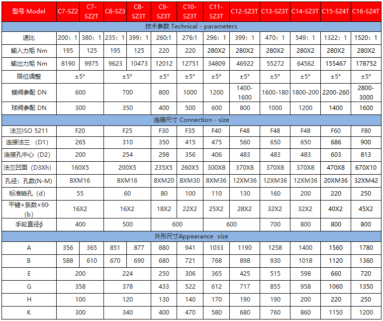 該系列是直齒輪箱與蝸輪箱對(duì)接組合成為二級(jí)傳動(dòng)蝸輪減速增壓機(jī)構(gòu),提高了機(jī)械總效率,輸入小力矩,開(kāi)動(dòng)大閥門(mén),使操作人員省力,每種型號(hào)提供多個(gè)傳動(dòng)比,能更好的匹配不同規(guī)格的閥門(mén)。