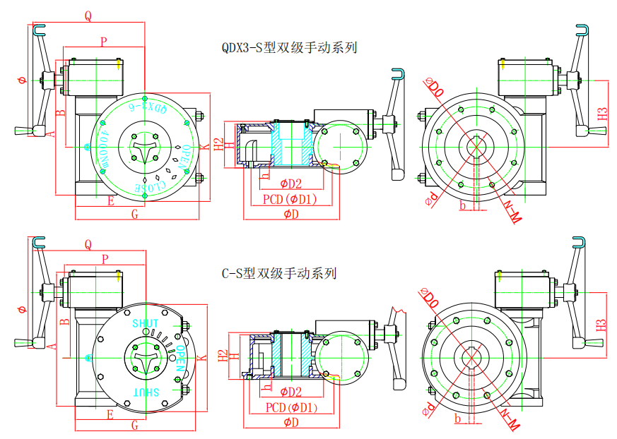 該系列是小蝸輪箱與大蝸輪箱對接組合成為二級傳動蝸輪減速增壓機(jī)構(gòu),提高了機(jī)械總效率,輸入小力矩,開動大閥門,使操作人員省力,每種型號提供多個傳動比,特殊型可輸出360°無限多回轉(zhuǎn),能更好的匹配不同規(guī)格的閥門。